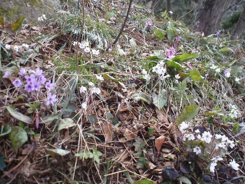 | 全体的には白の雪割草が多いような気がしました。以前(3年前)はもう少しいろいろな色が見られたと思うのですが・・・ | |