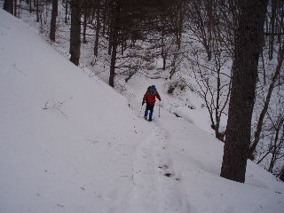| 歩きやすそうなところを選んでひたすら峠を目指します。 | |