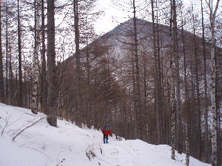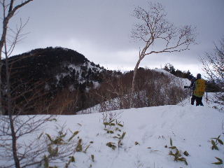 | その手前、すぐ目の前にみえる村上山にも以前登ったことがあります。娘のスノボーに付き合って、鹿沢スキー場(鍋蓋山)で滑っている間に近場の軽い山をということで歩いた山でした。思いがけなく懐かしい思い出を呼び覚ましてくれた今回の角間山はそれだけでも嬉しいものでした。 | |