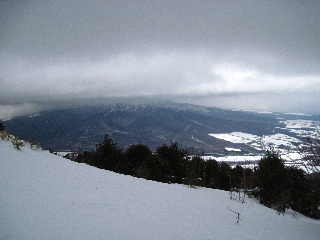 | 空は相変わらず曇り。良くなると期待したのですが、こうして見えていた角間山方面も下山時には見えなくなってしまいました。 | |
