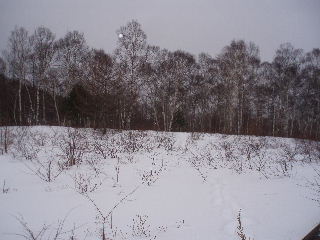 | 白樺の林は雪景色の中でも素敵です。 気温は3度、あたたかく感じました。 |