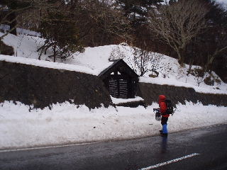 | 異常気象やら身の回りのことなど、こうして趣味に興じている中にも切り離せない問題点をそれぞれに身近に抱えているのだと改めて思いました。社会問題は自分達のこと、そう・・・誰だって悩みや苦労を抱えていますよね^_^; 話しながらも30分ほどで登山口へ。ここが朝登った先の登山口。道路を挟んだ向こうが駐車スペースで、ある程度除雪されていました。 |