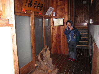 | 洗い場はシャワーや蛇口がなく、ぬるい打たせ湯があっただけ。シャンプーなどありましたが湯船の湯か、ぬるくて細い打たせ湯を使うしかありません。 後から入ってきた常連のおばあさんと二人だけでしたが、話好きな方で、戦争時代のご自分のお産の話や子供さん(私より年上)のこと、病気したことなどいろいろな話をしてくれました。ここでもいい出会いがあったと嬉しく思っていたのですが・・・。私が湯船の湯をすくって髪を洗った後、そのおばあさんがその湯船で入れ歯を漱いでカパッと自分の口にはめたのを見た時は衝撃でした(汗; |