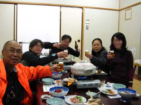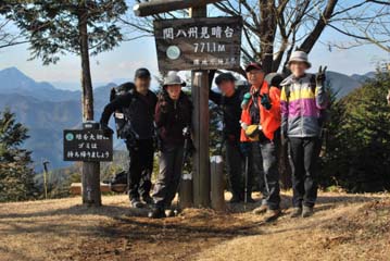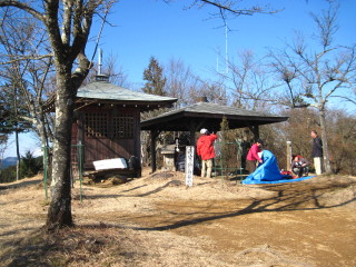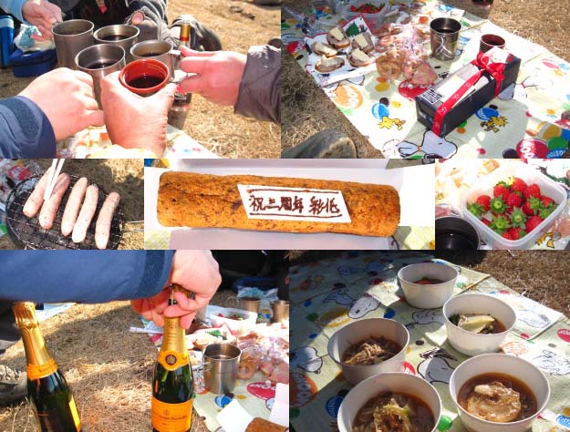 | 入口から5〜6分で見晴台山頂。先着のこの方達からお鍋のお裾分けを戴きました。 |