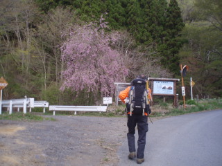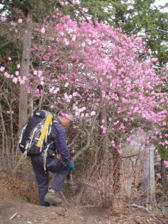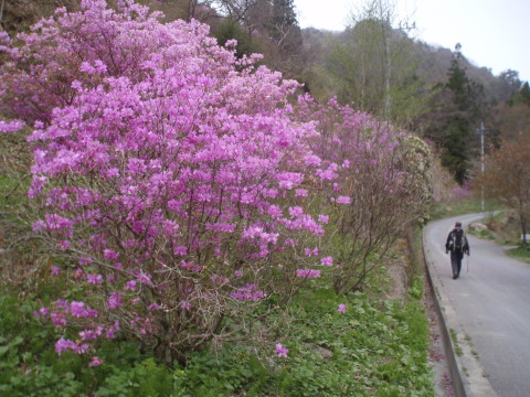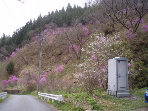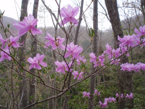 見事なミツバツツジや山桜などを見ながら 林道歩きで駐車場にもどります。 ![]() |