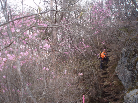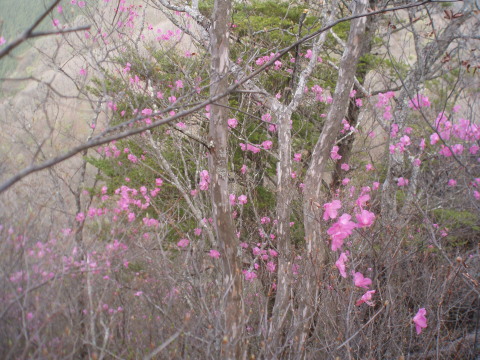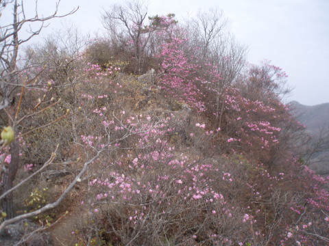 ![]() ↑ 笠丸山山頂部のアカヤシオ |