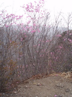 | ここもまずはトウゴクミツバツツジの登場。可愛いピンクです。 | ![]() |