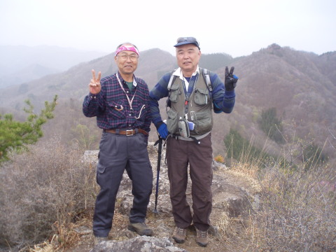 | 山頂でのんびりしていると 隣の車の男性が登ってきました。 しばし話し、三ツ岩岳がきれいだと話したら 「行ってみます」と言いながら 間もなく先に下山されました。 コーヒーを飲みながら寛いでいると また一人の男性が・・・ ん?・・・・ もしや・・・と躊躇いつつ、「昨年も此処に登られましたか?」 と尋ねると、ここ3,4年(だったか?)登られているとのこと。 「もしかして昨年神成山(かんなりやま)にも登られましたか?」 なんとも回りっくどい言い方をして、その方やはり 昨年、この山でお話しした方だと分かったのでした。 二年続けてこうしてお目にかかるとは!驚きました。 昨年はアカヤシオがさっぱりでしたが、 この方(Aさん)のお陰で神成山を教えていただいて ヤマツツジなど楽しんできたのでした。 おかげでまたまた話が弾み、 せっかくですからと一緒に記念写真撮らせていただきました。 トシちゃんとは一歳違いですが 昔はバリバリの山屋さんだったそうです。 今は里山をこよなく愛す素敵な方でした。 またお目にかかれたらいいですね。 ![]() |