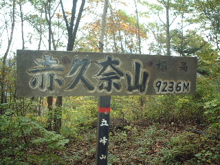 登山道を忠実に辿っていったら赤杭山(赤久奈山)を通り過ぎてしまった。少し戻ってみるが、標識があるものの見晴らしが良いわけではなかった。赤杭山と書かず、赤久奈山と書かれている。