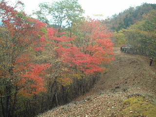 大ダワを通過して、コブタカ山へ登るころから、いくらか歩き安い山道になった。紅葉はまだこれからの方が良いようだったが、それなりに楽しめた。快晴だったらもっと鮮やかに見えただろうか。