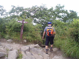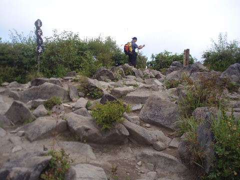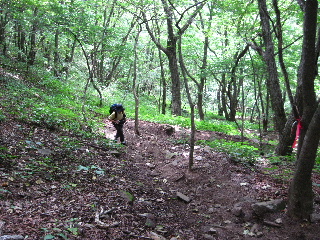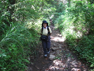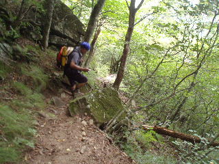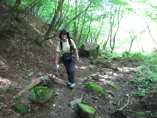 | 再び登り始めてまもなく、トシちゃんが「水場にメガネを忘れてきた・・・」と、慌てて引き返し、5、6分のロスタイム^_^; 女岩を過ぎるとやや急登になります。 |