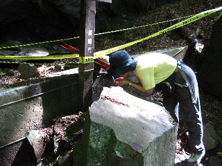 | 9月に入っても夏日の記録を更新中という連日の猛暑の今年ですが、ここの水はふんだんに流れ、冷たくて美味しくいただけました。 この水源は登山道を水浸しにすることなく、地下に深く浸透しているのでしょう、お陰で涼しく感じられるのだろうと思います。 水場にはどなたのご厚意か、カップまで用意されてました。 |