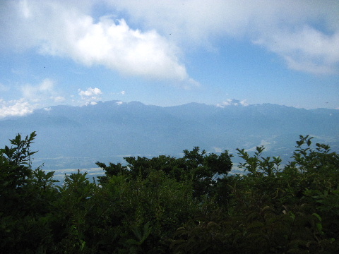 | 標柱の正面には 鳳凰三山や仙丈ケ岳や甲斐駒ケ岳や鋸岳 鳳凰の奥には北岳も少し見えているはず・・・ 鳳凰の手前は甘利山? |