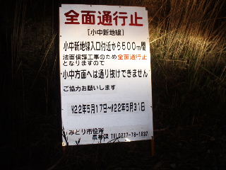 | みどり市小中からの林道は一部工事のため通行止め(H22.5/17-6/25)という情報をみどり市HPより入手。市役所に直接電話で確認すると沼田市側からは通行可。 沼田市方面から登山口に向かうと途中にあった通行止めの看板には5月末までとなっていました。行かれる方は再度ご確認ください。 根利(ねり)牧場までは舗装されていますがその先は砂利道。途中から石がゴロゴロの道になりますが、みどり市側に入るときれいに舗装されていました。 |