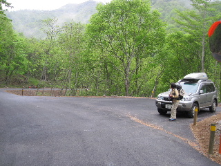 | 駐車場へ戻るまでにも路肩に停車の車が6台、駐車場にも6台でした。郡界尾根も人気があるようです。晴れていたらもっと多いのかもしれません。一週間後はシロヤシオがもっと見頃なことでしょう。 | ![]() |