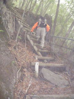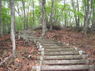 | 緩やかに整備された丸木の階段が続きます。 | |