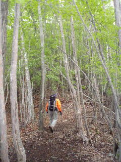 | 幻想的な樹林帯ですが、晴れていれば明るい林なのでしょうか。新緑がとてもきれいでした。 | |
