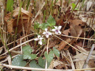 | 山頂の側にはミネザクラまで見ることが出来ました。 山頂で初めて二グループに出会いました。近所の子供さんと一緒だった男性から南西尾根の情報を教えていただき感謝です。 |