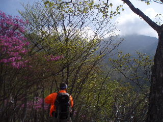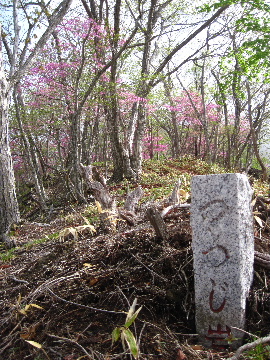 | アカヤシオも見ながら八反張りから一登りすれば前袈裟丸山山頂です。 | |