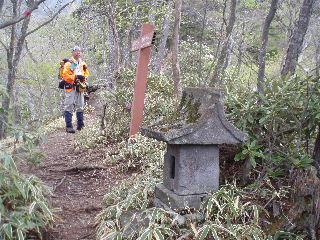 | 石祠。1482m。石祠の中にはお札が納められ、登山者を見守っているかのように、登山道沿いにありました。 | |