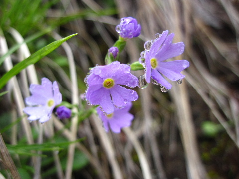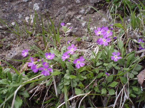 後袈裟丸を下ると八反張りの辺り、登山道脇に 数名がなにやらしていました。 辺りはガスっていましたので最初は良くわからず、 山菜採りでもしているのかと思ったら お目当てはサクラソウ。 サクラソウが観られるかもしれないと 情報はキャッチしていましたが、 この人たちがいなかったらスルーしてしたかもしれません。 お陰で観られることが出来、その人たちにも感謝です(^^ゞ コウシンソウも少し観られると、小丸山の説明書きに 書かれていたそうですが 見つけることは出来ませんでした。 ガレ場でガスっていることもあり、足場に気を遣う場所に 咲いていますので、ご注意ください。 |