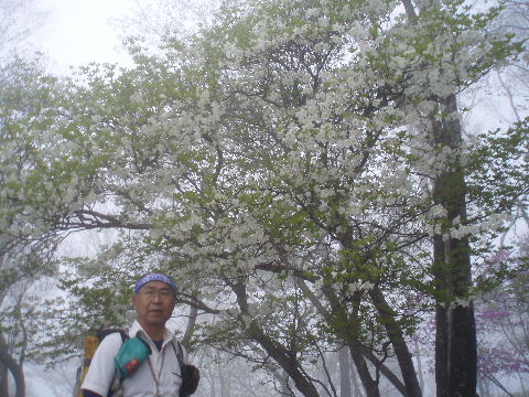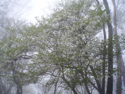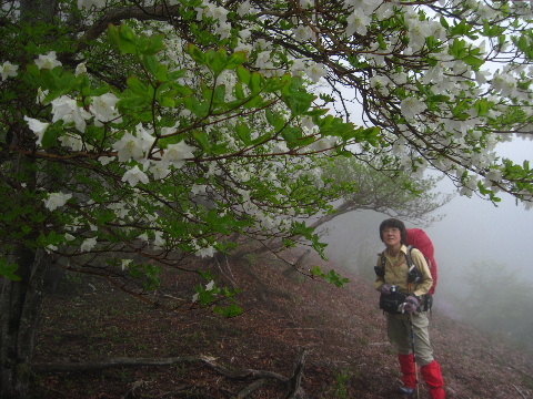 ガスった中でも満開のシロヤシオに目を奪われます。 |