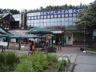 | スキー場だけあって、立派な建物が並んでいます。 リフトも動いており、殆どの人がリフト乗り場へ行きますが、私たちは建物脇の登山口へと向かいます。 |