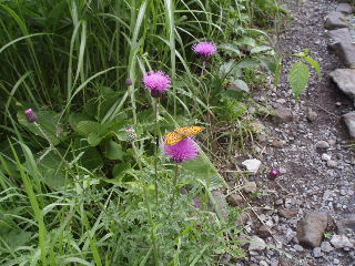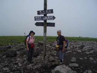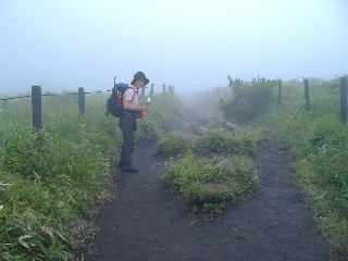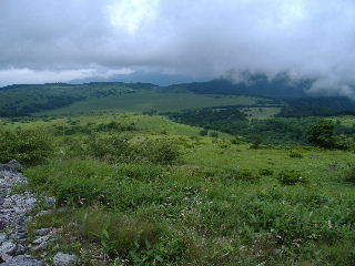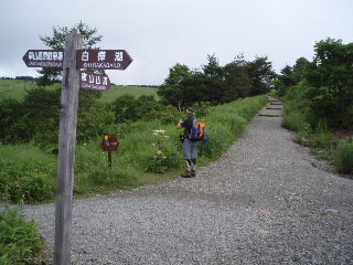 | H19年7月22日(日) 天気;曇りのち晴れのち小雨 Member.2人 【コ ー ス】(〜は歩、休憩時間含む) 車山高原スキー場駐車場8:30〜蝶々深山10:15-30〜物見岩10:50-11:00〜八島湿原一周散策(途中昼食)〜ヒュッテ御射山(みさやま)分岐13:17〜車山肩14:05〜周辺散策&喫茶で休憩(1時間くらい)〜車山山頂15:45-55〜車山高原スキー場駐車場17:10・・・所要時間約8時間40分(休憩含む。写真を撮りながらののんびり歩きです) |