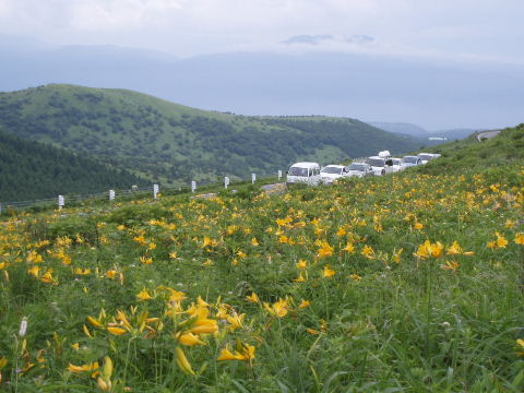 | 土日で尾瀬のニッコウキスゲを見に行きたかったのですが、諸事情により^_^;霧ケ峰になりました。ハイ、山レポを終わらせないと、トシちゃん動いてくれないということが分かりましたので、これからはもう山レポ優先で頑張っちゃいますからネ〜(ふぅ・・・・^_^;)。 それにしても土曜日は自宅周辺では雨も降らず、晴れ間さえ見えて残念に思ったのに、尾瀬では雨だったのですね。尾瀬なら雨でもテントでのんびり二日過ごしたかったですが(^^ゞ でも霧ケ峰は結果的に大正解!軽いザックでのんびり歩けて、のんびりお花見、写真撮影、展望も何とか見れて、途中のお店でお茶し、雨にもたいして降られず・・・運転は全部して貰って寝かせて貰ったし(^^♪ トシちゃんどうもアリガトネ♪ このニッコウキスゲの時期は駐車場も道路もメチャ混みですので、夜の内に家を出ます。家を出るのがいつも遅いので、登山口に着くのはいつも2時とか3時。仮眠はいつもわずかですが、今回のコースは余裕があるのでゆっくり眠れます。でも6時過ぎには起床。 |