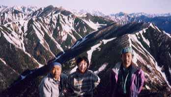 山頂でドリップコーヒーをいれていると背中から「おはようございます」という声。振り返ると森山さんだった。出発の時間が違うし下山ルートも違うから昨日でお別れと思っていたが、丁度彼の事を思い出して話していた時だけに、びっくりしてしまった。「ちょうどよかった、コーヒー飲んでいきなよ」と、我が家の茶の間に誘うような感じで、また三人の行動が一緒になる。若い森山さんには迷惑だったかも知れないが、私達はすっかり喜んでいた。