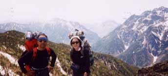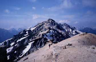 常念山頂の展望を十分堪能した後、再び蝶へ向かって歩き出した。私達の遅いペースに合させるのは気の毒だから、私達は先に出れる時は先に出発した。逆に先に行ってもらった事もある。でもピークでは必ず一緒になった。山の感激を共に味わえる人が、側にいるというのは良い。仲良くなればなおさらだ。