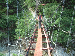 左【薬師沢小屋前の吊り橋】
