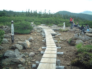 私たちはゆっくりコンスタントに登っていく。ん?今日は調子がいいぞ!約2時間、予定より早く木道に到着。あとは緩やかな傾斜の木道を登っていくだけ。スゴ乗越のテン場にいた男性に教えてもらったブルーベリーの実をつまみながら歩いていった。