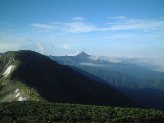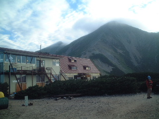 空身でのピストンは楽だった。山頂は狭い。展望も望めず、記念写真を撮っただけだがおかげで早い時間に小屋に戻ることが出来た。下る途中、一緒だった女性が重装備のまま登ってきた。これから無事黒部に辿り着けるのか心配だったが、「行けるかなぁ〜」とつぶやきつつ楽しんでいるように見える彼女の表情は明るかった。そこで別れ、私たちは小屋へと戻った。
