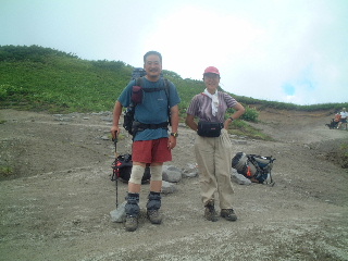 それにしても暑い。気温が上がって随分暑くなった。風が時々吹いてくるのが嬉しかった。だんだんと昨日ゆっくり休んだ夫と、歩いた私の差が現れ、私はバテ気味になってきた。途中の平らな岩で休んでいると、吉田さんが今度は通過していった。やがて幸いなことにガスってきた。ガスっていれば展望を望むが、この時ばかりは涼しい方が有り難かった。