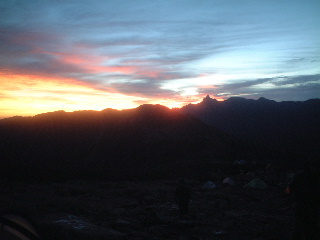 先に到着していた吉田さんの近くにテントを設営、水場まで下り水を補給。ここの水場は大きなプラスティックのタンクにポンプアップしており、そのタンクの上から柄杓で水入れに移す。一人ずつしか出来ないので時間がかかる。でもきれいな水だった。そこからテン場まで戻るのがチョットの距離なのに、くたびれている体には辛かった。その頃になって雨が降ってきた。