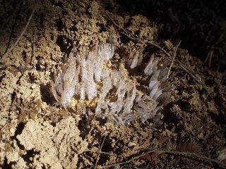 | 足元にはたまに霜柱。バリバリのままです。 お昼休憩していると、やはりいろいろな人が通過して行きます。その都度いろいろな人とおしゃべり(笑)。この時、靴を脱いで踵を見てみると、既にマメが・・・。ケアをして、その後もなんとか歩き続けます(Sさん、今回も役立ちました、ありがとうございます♪)。 簡単にエネルギー補給をして再び歩き出しますと、少しは元気が出た気がします。それでも次々人に道を譲ります。この、道を譲るというのがけっこうロスタイムを生み、リズムも狂いますが仕方ありません。そうそう、時間はあります、のんびり行けば良いんですから・・・ |