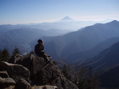 ・・・と、後ろからものんびりと登ってくる人が・・・ のんびりでも道を譲ろうと振り返ったとたん、 「あ”ぁ〜〜〜〜」・・・・またしても奇声がハモリます^_^; いじるさんでした。 いじるさんとてつい最近(先月末)雲取山の奥多摩小屋でバッタリしたばかり!げんさんに続いてビックリ二重奏です^_^; いじるさんはお連れさんに合わせてのんびりでしたが、へばっていた我らですからお先に行っていただきます。 |