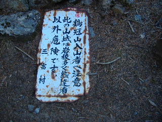 | 鶏冠山へのルートがありますが、ロープが張られ、危険の注意書き。かなり大変な山だと聞いています。山梨百名山の一座だそうですが、これで完登は断念です(^^ゞ |