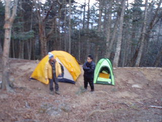 | 既に甲武信ヶ岳をピストンしてテント設営を終えていたげんさん(早っ!)と隣り同士にして、我らもテント設営。 夕餉には時間がまだ早かったので、私たちも空身で山頂へ。空身だったのにどうして足が重かったのだろう・・・ほんの少しなのに辛かった・・・ |