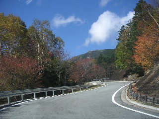 状況を見て、また通り沿いの山にでも登ろうと、とにかくそのまま先の乙女高原方面に向けてドライブ。舗装されているが、対向車がいたらけっこう気を遣う細い林道だ。運転は夫に任せて私は黄葉、紅葉を充分堪能。思ったより綺麗に色づいていた。まだまだこれからしばらくは充分楽しめそうだ。