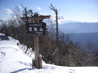 【三日目13日)】 5時起床。やはり前夜雪が少し降っていた。昨夜の残りで食事を済ませ、テント撤収。まだ誰も通っていない登山道、新雪がうっすらと積もっている上を歩くのは気持ち良い。 酉谷の避難小屋はもう見える所まで来ていたが、歩けばまだけっこうな距離だった。途中に酉谷山への登り口があり登っていく。もし昨日ならばそのまま小屋へ向かい、小屋から山頂ピストンとなっただろう。 山頂は想像以上に遠かった。踏み跡はほとんど消えかかっており、やはりズボズボとはまった。途中トップを変わり私が先に行く。山頂かなと思うたびに裏切られ、それだけに登り甲斐のある山であった。 |