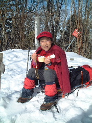 雪とコンデンスミルクで氷ミルクなど作って食べながら誰もいない山頂でのんびり過ごす。 人の少ない静かな山行だ。 |