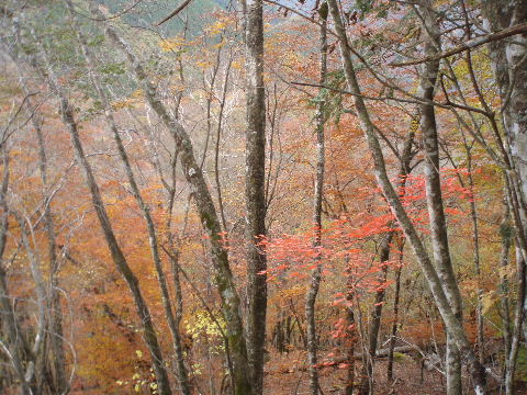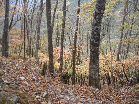 | H20年10月25-26日(土〜日) 天気;1日目小雨&曇り、2日目曇りのち晴れ Member.1人 【コ ー ス】(〜は歩、休憩含む。・・・時間は所要時間) 1日目(10/25土):奥多摩駅7:00〜氷川大橋〜三ノ木戸山(さのきどやま)分岐〜六ツ石山(むついしやま1478.8m)11:20〜鷹ノ巣山分岐13:30〜鷹ノ巣山避難小屋14:00〜日陰名栗峰(1725m)〜高丸山巻く〜七ツ石山分岐16:00〜七ツ石小屋16:20(テント泊) 2日目(10/26日):七ツ石小屋6:55〜七ツ石山(ななついしやま1757.3m)7:25-35〜ブナ坂7:45〜奥多摩小屋8:25〜小雲取山〜雲取山(くもとりやま2017.1m)9:40-10:20〜雲取山荘10:38〜大ダワ10:58-11:03〜芋ノ木ドッケ11:53〜白岩山12:00-05〜白岩小屋12:25-30〜前白岩山12:50-13:25〜前白岩の肩13:35〜お清平15:05〜霧藻ヶ峰休憩所14:25-35〜霧藻ヶ峰〜地蔵峠14:43〜炭焼平〜妙法ヶ岳分岐15:10〜三峰神社登山口(参道入り口)15:43〜バス停(駐車場)15:45(15:45発西武秩父行き) |