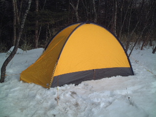 | 初めての単独テント泊 雪が少ないなぁ〜と思っていたら翌日は雪♪ |