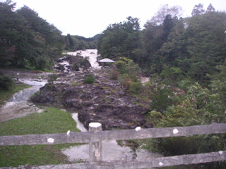 折角だから、厳美渓へちょっとだけ寄ってみる。でも悪天候なのでその美しさは見られなかった。 |