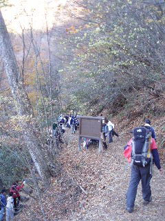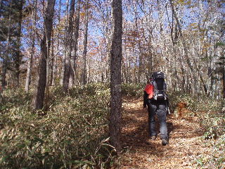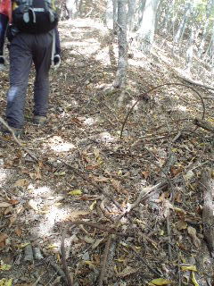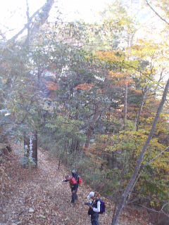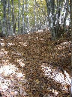 | 落ち葉で埋まった登山道。紅葉の前に散ってしまったのかと思われましたが、これから(1300mくらいから)が素敵でした。 |
