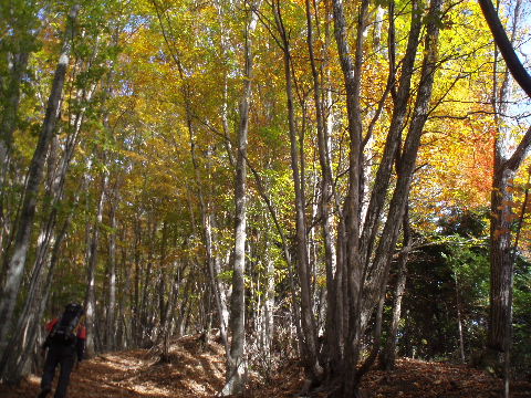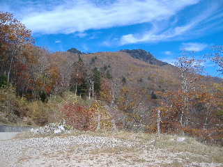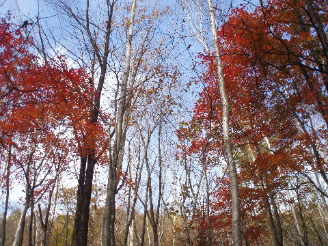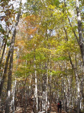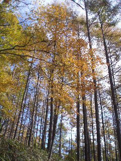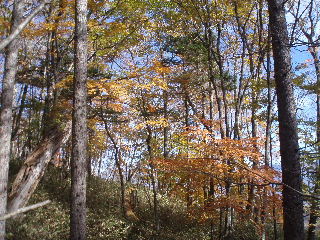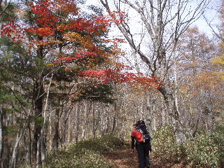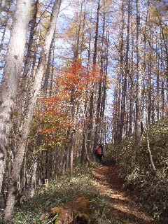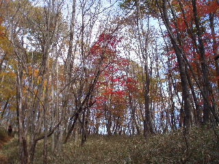 林道の上の紅葉はもう終わりかかっていました。 |