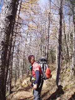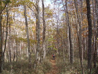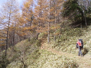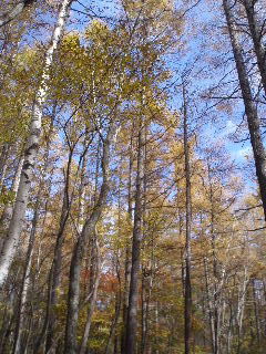 落葉松の葉はかなり落ちていましたが、足元はふかふか。 |