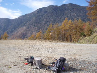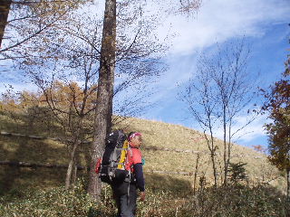| 稜線の落葉松はすっかり落葉。いえ、アナタのことじゃありませんて・・・^_^; |